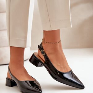 Lakierowane baleriny na niskim obcasie typu klocek to wyjątkowo elegancka propozycja, która doskonale łączy styl z komfortem. Szpiczaste noski optycznie wydłużają nogi. Odkryta pięta nadaje im lekkości. Baleriny te świetnie sprawdzą się zarówno w codziennych stylizacjach, jak i w bardziej formalnych okazjach.