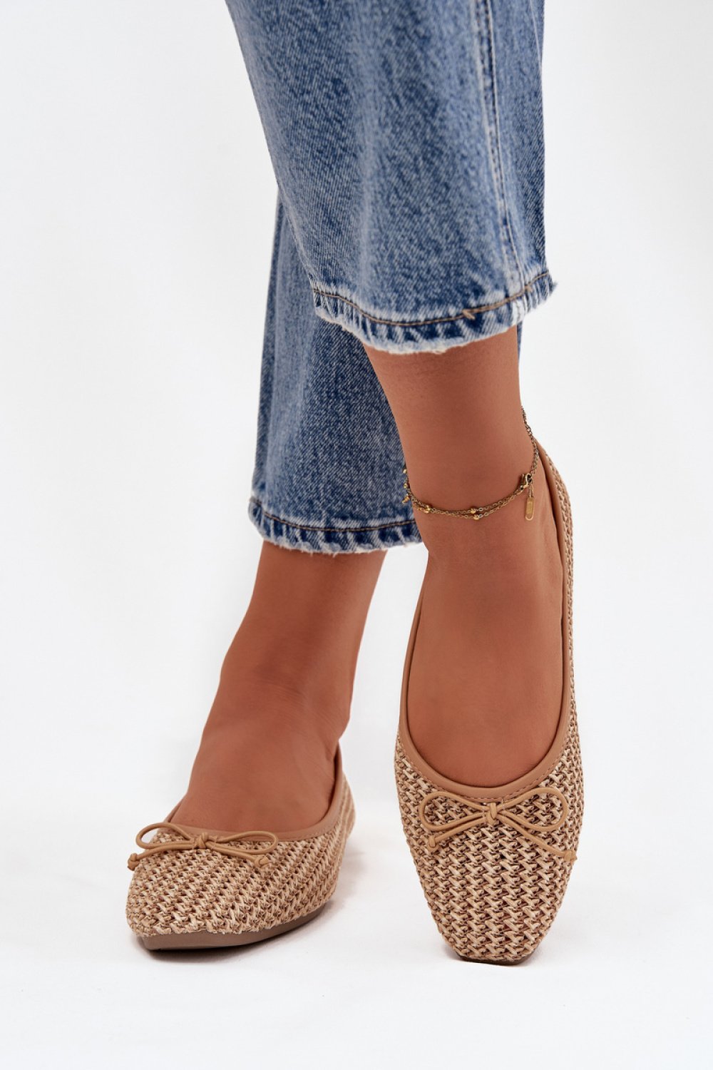 Baleriny damskie wykonane z plecionego tworzywa to lekkie i stylowe obuwie idealne na co dzień. Model z zaokrąglonymi noskami prezentuje się klasycznie i kobieco, a płaska podeszwa zapewnia wygodę podczas noszenia. Z przodu znajduje się urocze wiązanie w formie kokardki, które dodaje butom delikatnego, dziewczęcego charakteru. Wnętrze wyposażone jest w miękką wkładkę z eko skóry, gwarantującą komfort przez cały dzień. Idealne do pracy, na spacer czy codzienne wyjścia.