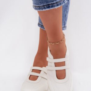 Baleriny damskie z eko skóry w sportowym stylu to wygodna i nowoczesna propozycja na co dzień. Dwa paski umieszczone na śródstopiu zapewniają lepszą stabilizację oraz stanowią dekoracyjny detal. Lekki fason sprawia, że buty doskonale sprawdzą się w codziennych stylizacjach, łącząc komfort noszenia z modnym, sportowym wyglądem.