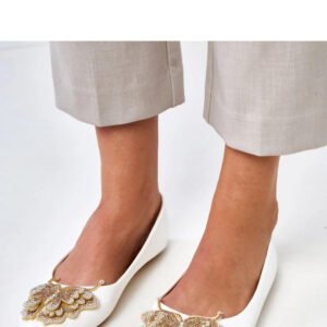 Baleriny damskie z ozdobnym motylkiem z cyrkoniami to uroczy i elegancki model, który doda subtelnego blasku każdej stylizacji. Wykonane z wysokiej jakości skóry ekologicznej, łączą komfort noszenia z ponadczasowym stylem. Okrągły nosek zapewnia wygodę, a płaski obcas gwarantuje stabilność podczas chodzenia. Wyjątkowym akcentem jest ozdobny motylek z cyrkoniami, który subtelnie podkreśla kobiecy charakter butów. Wkładka ze skóry ekologicznej zwiększa komfort użytkowania, dzięki czemu baleriny sprawdzą się zarówno w codziennych, jak i bardziej eleganckich zestawach.