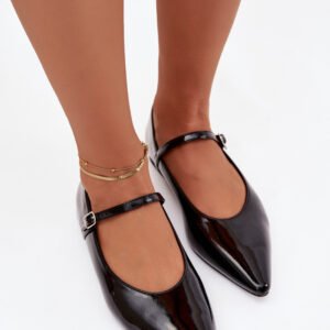 Baleriny damskie wykonane z lakierowanej eko skóry to elegancka propozycja dla kobiet ceniących styl i wygodę. Model z noskiem w szpic optycznie wysmukla stopę, a płaski obcas zapewnia komfort przez cały dzień. Na śródstopiu znajduje się regulowany paseczek, który zwiększa stabilność i jednocześnie stanowi modny, stylowy akcent. To idealne obuwie zarówno do eleganckich, jak i codziennych stylizacji.