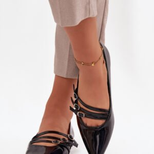 Stylowe baleriny wykonane z lakierowanej eko skóry. Model wyróżniają trzy cienkie paseczki, które subtelnie zdobią stopę jednocześnie zapewniając odpowiednią stabilizację. Szpiczasty nosek optycznie wysmukla nogi, a płaski obcas gwarantuje wygodę podczas całodziennego noszenia. Te baleriny to idealny wybór zarówno do eleganckich stylizacji, jak i na co dzień, gdy chcesz wyglądać kobieco i czuć się komfortowo.