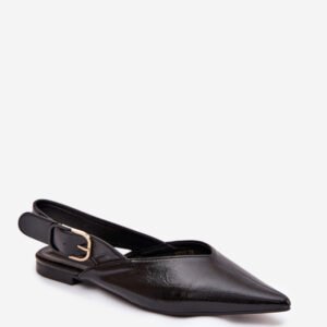 Baleriny damskie wykonane z eko skóry. Smukłe, szpiczaste noski nadają im lekkości i podkreślają kobiecy styl, a płaski obcas zapewnia wygodę podczas chodzenia. Przeszycie umieszczone z przodu dodaje subtelnego charakteru, natomiast pasek z tyłu z ozdobną klamrą pełni zarówno funkcję regulacji, jak i efektownego detalu. To model, który świetnie dopełni zarówno casualowe, jak i bardziej eleganckie stylizacje.