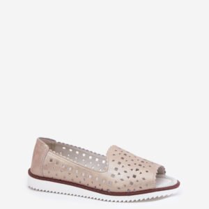 Baleriny damskie wykonane z naturalnej skóry. Osadzone na delikatnej platformie, zapewniają wygodę przez cały dzień. Model z odkrytymi noskami. Ażurowy wzór nadaje wyjątkowego uroku i lekkości. Skórzana wkładka dba o odpowiednią amortyzację i wygodę podczas noszenia. Te baleriny będą doskonałym wyborem do eleganckich, jak i codziennych stylizacji.
