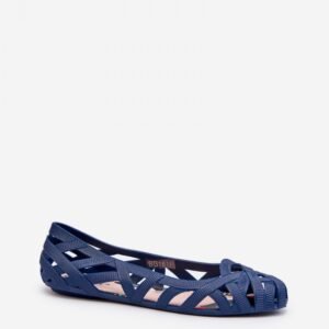 Damskie baleriny zostały wykonane z gumowego tworzywa. Ozdobny fason z przeplatających się pasków. Baleriny osadzone są na płaskim obcasie. Nosek w kształcie migdała. Model ten świetnie sprawdzi się w upalne dni!