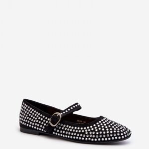 Baleriny wykonane z eko zamszu ozdobione licznymi dżetami. Zapinane na regulowany pasek, który zapewnia stabilizację i komfort noszenia. Te baleriny to doskonały wybór na każdą okazję. Z pewnością dodają blasku każdej stylizacji.