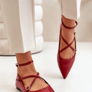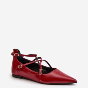 Damskie baleriny wykonane z eko skóry. Zapinane wokół kostki na regulowany pasek, co zapewni idealne dopasowanie do stopy. Osadzone na płaskim obcasie. Noski w szpic optycznie wysmuklą nogi. Miękka wkładka zapewni wygodę na każdym kroku. Model ten wyróżnią się przeplatającymi się, cienkimi paseczkami ze sprzączką. Niezwykle modny fason, który powinien znaleźć się w Twojej garderobie!