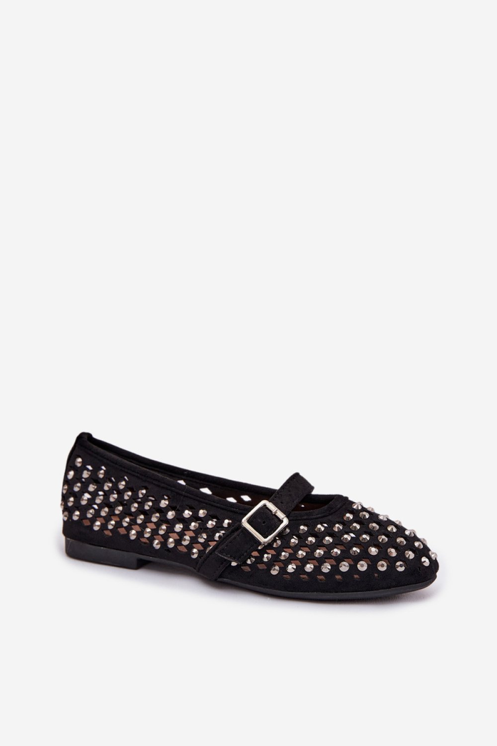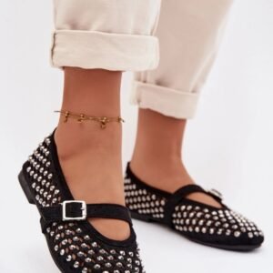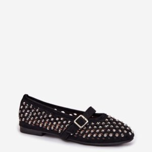 Baleriny damskie z eko zamszu to stylowa propozycja na ciepłe dni. Ażurowa cholewka ozdobiona cyrkoniami nadaje im delikatnego blasku. Pasek zapinany na klamrę na śródstopiu zapewnia dobre dopasowanie oraz podkreśla kobiecy charakter modelu. Zaokrąglone noski dopełniają klasycznego fasonu, dzięki czemu baleriny doskonale sprawdzą się zarówno w codziennych, jak i bardziej eleganckich stylizacjach.