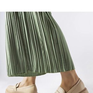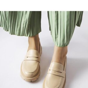 Beżowe eleganckie mokasyny Puccianiello to doskonały wybór na letnie dni. Ich wsuwany design sprawia, że są łatwe w zakładaniu i zdejmowaniu, co jest bardzo praktyczne podczas upalnych dni. Niski profil zapewnia komfort i swobodę ruchu, a wykonane z oddychającej gumy pozwalają stopom na oddychanie nawet w najgorętsze dni. Staranne szycie dodaje im elegancji, a okrągły nosek delikatności i uroku. Zielony kolor doskonale komponuje się z letnimi stylizacjami, pasując zarówno do jeansów, jak i sukienek czy spódniczek. Te mokasyny to must-have dla modnych kobiet, które cenią sobie wygodę, trwałość i styl. Idealne dla młodego pokolenia, które stawia na trendy i stylowe buty. Materiał zewnętrzny to skóra ekologiczna, podeszwa wykonana z gumy, a zapięcie to wsuwanie. Doskonały wybór na letnie dni!