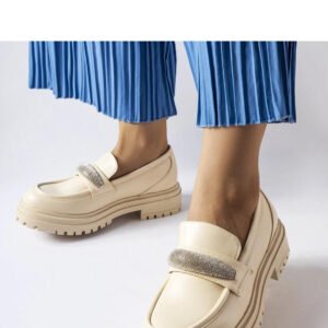 Beżowe mokasyny z cyrkoniami Hartford – Solea