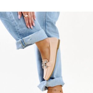 Beige moccasins with a cubic zirconia buckle Mali Mocasinii Mali represent the perfect combination of modern design and comfort. These slip-on moccasins, with a low sole, stand out with their unique square toe and a decorative buckle with cubic zirconia, adding an elegant charm to them. Made from high-quality materials, they have a rubber elastic sole, ensuring comfort throughout the day. These modern moccasins will be an excellent addition to any style, adding a unique character to it. Outer material: Synthetic leather Lining: None Sole material: Rubber Sole color: Brown Closure: Slip-on Collection: Spring/Summer
