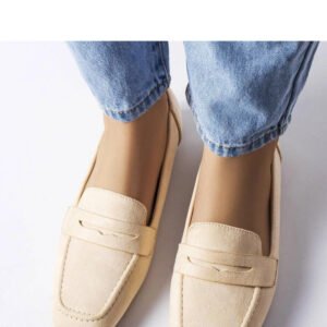 Beżowe mokasyny Meilleur z eko-zamszu to idealny wybór dla kobiet, które cenią sobie elegancję i wygodę. Wykonane z wysokiej jakości skóry ekologicznej zamszowej, cechują się elastycznością i wytrzymałością. Minimalistyczny design dodaje im elegancji, a uniwersalny beżowy kolor sprawia, że świetnie będą pasować do wielu stylizacji. Mokasyny mają standardową numerację rozmiarów, więc warto kierować się swoim rozmiarem przy zakupie. Idealne na lato, zapięcie na wsuwanie ułatwia ich zakładanie. Podeszwa wykonana z tworzywa sztucznego w kolorze beżowym.
