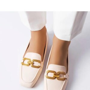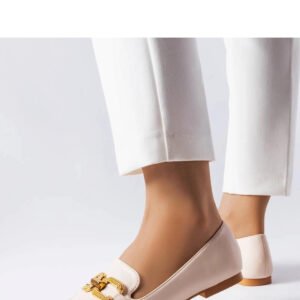 Beżowe mokasyny z klamerką Rousseau to eleganckie i stylowe obuwie na płaskiej podeszwie. Wykonane ze skóry ekologicznej, ozdobione charakterystycznym przeszyciem i błyszczącą aplikacją z przodu, prezentują się bardzo efektownie. Wewnętrzna wyściółka z miękką pianką zapewnia komfort noszenia. Uniwersalny beżowy kolor sprawia, że będą pasować do wielu stylizacji. Mokasyny będą idealne dla osób o wąskiej stopie. Numeracja standardowa, więc warto wybrać swój rozmiar. Zapięcie na wsuwane ułatwia ich zakładanie. Doskonały wybór na lato!