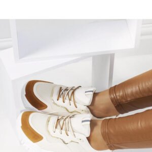 Beżowe obuwie sportowe model Osorio to idealna propozycja dla miłośniczek eleganckiego i wygodnego stylu. Połączenie odcieni nude i brązu nadaje butom niepowtarzalnego charakteru, który świetnie komponuje się z letnią garderobą. Wysoka wzorzysta podeszwa z dodatkiem złotego akcentu dodaje im elegancji i oryginalności. Buty wykonane są z wysokiej jakości tkaniny, która została uzupełniona eko-zamszem i eko-skórą, co sprawia, że są one nie tylko stylowe, ale także przyjazne dla środowiska. Numeracja butów jest zaniżona, dlatego zalecamy wybranie rozmiaru większego niż zazwyczaj. Buty nie posiadają ocieplenia, co sprawia, że idealnie sprawdzą się w letnie dni. Zapinane są na sznurowanie, co pozwala na idealne dopasowanie do stopy. Kolor białej podeszwy dodaje butom świeżości i lekkości. Model Osorio to idealna propozycja dla kobiet ceniących sobie nie tylko wygodę, ale także modny wygląd.
