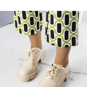 Beżowe półbuty na masywnej podeszwie Kay to idealne obuwie dla każdej modnej kobiety. Mają traktorową podeszwę z kwadratowym obcasem, niską cholewkę przed kostkę oraz krótkie sznurowanie z przodu. Mają również okrągły nosek i minimalistyczne przeszycia, co nadaje im nowoczesny wygląd. Wykonane są ze skóry ekologicznej, co sprawia, że są nie tylko stylowe, ale również przyjazne dla środowiska. Doskonale będą pasować do bluzki z dekoracyjnymi łańcuszkami i skórzanej spódnicy. Numeracja jest standardowa, więc warto wybrać swój zwykły rozmiar. Materiał zewnętrzny to skóra ekologiczna, natomiast podeszwa jest wykonana z gumy w beżowym kolorze. To obuwie z kolekcji na lato, które doda świeżości i stylu każdej letniej stylizacji.