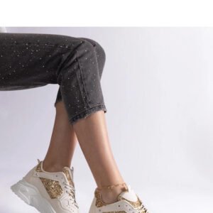 Beżowe sneakersy damskie z brokatowymi wstawkami Caraballo – Solea