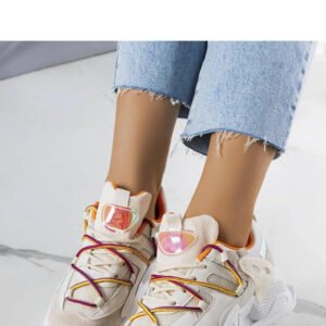 Beżowe sneakersy z łączonych materiałów marki Traci to idealna propozycja dla osób ceniących sobie wygodę i styl. Buty posiadają białą podeszwę wykonaną z trwałej gumy, która zapewnia stabilność podczas chodzenia. Model ten zapinany jest na tradycyjne sznurowadła, co pozwala na idealne dopasowanie do stopy. Sneakersy idealnie sprawdzą się na lato, dodając casualowego charakteru każdej stylizacji.