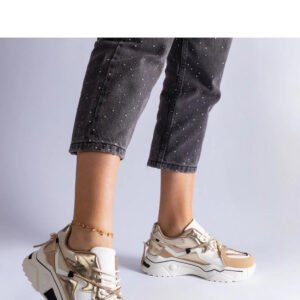 Beżowe sneakersy zdobione cyrkoniami z sznurkiem Valdeza to doskonały wybór dla każdej kobiety, która ceni sobie oryginalny i modny wygląd. Buty te są nie tylko stylowe, ale także wygodne i praktyczne, dzięki czemu idealnie sprawdzą się na co dzień. Sznurówki ozdobione cyrkoniami dodają im elegancji i wyjątkowego charakteru. Sneakersy wykonane są z wysokiej jakości materiałów, takich jak skóra ekologiczna, co gwarantuje trwałość i komfort noszenia. Mają niską cholewkę, co sprawia, że są lekkie i wygodne. Podeszwa z gumy w kolorze białym zapewnia dobrą przyczepność i amortyzację. Buty zapinane są na sznurowadła, co pozwala na idealne dopasowanie do stopy. Te sneakersy to doskonałe połączenie stylu, jakości i wygody. Świetnie sprawdzą się zarówno na co dzień, jak i na specjalne okazje. Niech Twój strój zyska unikalny akcent dzięki tym wyjątkowym butom!