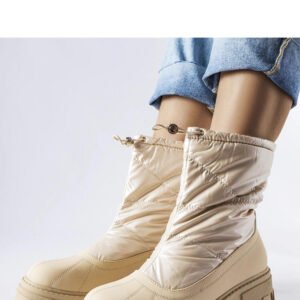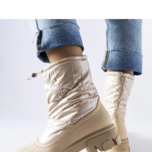 Beżowe śniegowce ze ściągaczem Cendrillon to idealne obuwie na zimę, które łączy funkcjonalność z elegancją. Ich wysokość za kostkę zapewnia dodatkową ochronę przed zimnem i wilgocią, jednocześnie dodając kobiecy akcent do stylizacji. Okrągły nosek nadaje im delikatny wygląd, który pasuje zarówno do codziennych, jak i bardziej formalnych outfitów. Dzięki dobrze izolowanemu wnętrzu, śniegowce Cendrillon są niezwykle ciepłe, nawet w najzimniejsze dni. Płaski obcas gwarantuje stabilność i pewność kroków na każdej powierzchni. Ich beżowy kolor sprawia, że łatwo można je dopasować do różnych ubrań, co czyni je nieodzownym elementem garderoby każdej modnej kobiety. Wykonane z dbałością o detale, śniegowce Cendrillon są trwałe i wytrzymałe. Bez względu na to, czy planujesz długie spacery po zaśnieżonym mieście, czy po prostu potrzebujesz wygodnego obuwia na co dzień, beżowe śniegowce ze ściągaczem Cendrillon są doskonałym wyborem. Ich wsuwanie sprawia, że są łatwe w zakładaniu i zdejmowaniu, co jest dodatkowym atutem podczas szybkich wypadów na zewnątrz. Materiał zewnętrzny wykonany jest z ekologicznej skóry zamszowej, natomiast podeszwa jest wykonana z tworzywa sztucznego w beżowym kolorze. Te śniegowce z pewnością będą niezastąpionym dodatkiem do Twojej zimowej garderoby.