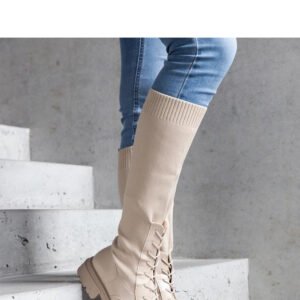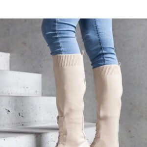 Beżowe wsuwane kozaki z materiałową elastyczną cholewką Luana – Solea