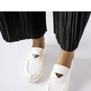 Białe damskie mokasyny Milne to idealny wybór dla kobiet ceniących sobie modny wygląd i wygodę. Wykonane z wysokiej jakości skóry ekologicznej, zapewniają komfort noszenia przez cały dzień. Ich nowoczesny design z okrągłym nosem dodaje im uroku i stylu. Niski design sprawia, że są idealne do noszenia na co dzień, a zapięcie typu wsuwane ułatwia zakładanie i zdejmowanie. Białe mokasyny Milne to obuwie, które doskonale sprawdzi się w każdej sytuacji.