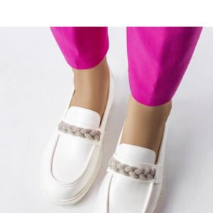 Białe mokasyny zdobione cyrkoniami Montreal to idealne obuwie na lato. Wykonane z wysokiej jakości skóry ekologicznej zam, zapewniają komfort noszenia i elegancki wygląd. Numeracja jest standardowa, więc warto sugerować się swoim rozmiarem przy wyborze. Zapięcie wsuwane ułatwia szybkie zakładanie i zdejmowanie butów. Podeszwa wykonana z tworzywa sztucznego jest biała, co dodaje lekkości i świeżości całej stylizacji. Te mokasyny będą doskonałym uzupełnieniem letniej garderoby, dodając jej subtelnego blasku dzięki cyrkoniom.
