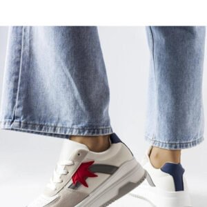 Stylowe białe sneakersy z ekozamszową wstawką marki Kollins to idealna propozycja na lato. Wykonane z wysokiej jakości skóry ekologicznej zam, zapewniają wygodę i komfort noszenia. Nie posiadają ocieplenia, dzięki czemu są doskonałe na ciepłe dni. Podeszwa wykonana z gumy w kolorze białym doskonale komponuje się z całością. Sneakersy posiadają praktyczne sznurowanie, które pozwala na idealne dopasowanie do stopy. Idealne uzupełnienie letniej garderoby!