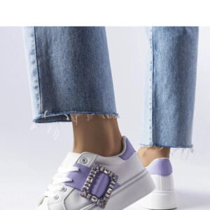 Białe sneakersy zdobione fioletową klamerką Ike – Solea