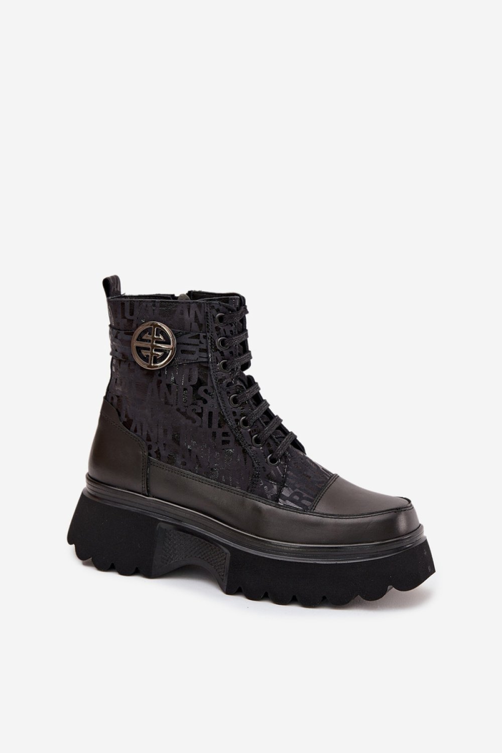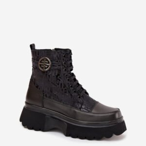 Botki damskie marki Artiker to stylowe obuwie stworzone z myślą o chłodniejszych dniach. Wykonane z naturalnej skóry, wyróżniają się solidnością i modnym wyglądem. Osadzone na stabilnej platformie, zapewniają komfort noszenia i nowoczesny wygląd. Model posiada zarówno sznurowanie, jak i praktyczny zamek, co ułatwia zakładanie oraz dopasowanie do stopy. Cholewkę zdobią modne napisy oraz pasek z ozdobnym detalem. Wnętrze ocieplone sprawia, że świetnie sprawdzą się w sezonie jesienno-zimowym.