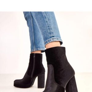 Eleganckie botki za kostkę z delikatnym połyskiem, wykonane z wysokiej jakości ekologicznej skóry zamszowej. Model zachwyca subtelnym blaskiem materiału, który dodaje mu wyjątkowego, kobiecego charakteru. Buty posiadają okrągły nosek oraz stabilny obcas typu słupek o wysokości 11 cm, wsparty platformą 2 cm, co zapewnia wygodę i pewność kroków. Ocieplane wnętrze z tkaninową wkładką gwarantuje komfort nawet w chłodniejsze dni. Dzięki zapięciu na zamek oraz cholewce o wysokości 14 cm, botki doskonale dopasowują się do nogi i pięknie ją wysmuklają. To stylowy model z nutą elegancji, idealny zarówno do codziennych, jak i wieczorowych stylizacji.