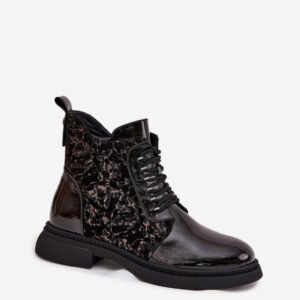 Botki damskie wykonane z naturalnej, lakierowanej skóry to propozycja łącząca elegancję z funkcjonalnością. Dzięki połyskującej powierzchni prezentują się wyjątkowo stylowo i nadają każdej stylizacji nowoczesnego charakteru. Model został osadzony na płaskim obcasie, co zapewnia wygodę i stabilność podczas codziennego użytkowania. Połączenie praktycznego zamka z klasycznym sznurowaniem pozwala na idealne dopasowanie butów do stopy oraz ułatwia ich zakładanie i zdejmowanie. Wnętrze ocieplone miękkim kocem obuwniczym gwarantuje komfort termiczny, dzięki czemu botki świetnie sprawdzają się w chłodniejsze dni. To elegancki model, który doskonale dopełni zarówno casualowe, jak i bardziej wyjściowe zestawy.