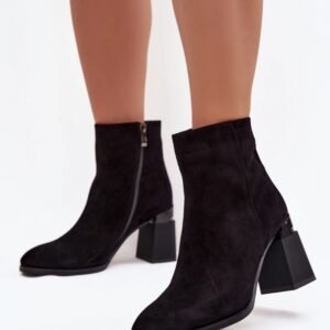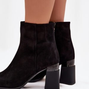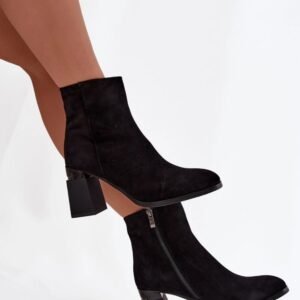Botki damskie z naturalnego zamszu to propozycja, która łączy klasyczną elegancję z codzienną wygodą. Wykonane z wysokiej jakości materiału, prezentują się niezwykle stylowo. Model osadzony na stabilnym obcasie typu słupek pięknie wysmukla sylwetkę, jednocześnie zapewniając komfort noszenia. Buty posiadają praktyczne zapięcie na zamek, które ułatwia zakładanie i zdejmowanie, a delikatnie zaokrąglone noski podkreślają klasyczny wygląd. Ocieplane wnętrze gwarantuje przyjemne ciepło w chłodniejsze dni, dzięki czemu model świetnie sprawdzi się w okresie jesienno-zimowym. To uniwersalne botki, które idealnie dopełnią zarówno eleganckie stylizacje z sukienką, jak i codzienne zestawy z jeansami czy spódnicą.