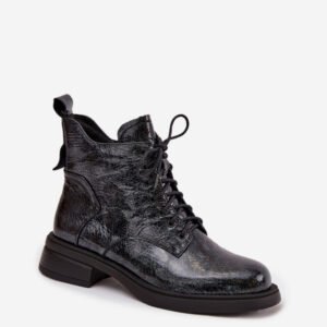Botki damskie wykonane z naturalnej, lakierowanej skóry to elegancka propozycja na chłodniejsze dni. Niski obcas w formie klocka zapewnia stabilność i wygodę podczas noszenia. Model posiada sznurowanie oraz praktyczny zamek, co pozwala na łatwe zakładanie i idealne dopasowanie do stopy. Wnętrze ocieplone kocem obuwniczym gwarantuje komfort termiczny, dzięki czemu botki świetnie sprawdzą się w sezonie jesienno-zimowym. To uniwersalne obuwie, które doskonale uzupełni zarówno codzienne, jak i bardziej formalne stylizacje.
