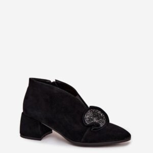 Eleganckie, niskie botki damskie z naturalnego zamszu to propozycja, która łączy klasyczny styl z wygodą użytkowania. Wykonane z wysokiej jakości materiału, prezentują się szykownie i ponadczasowo, a jednocześnie gwarantują trwałość na wiele sezonów. Osadzone na stabilnym obcasie w formie klocka, zapewniają komfort podczas noszenia i dodają sylwetce subtelnej elegancji. Migdałowe noski podkreślają kobiecy charakter obuwia, a efektowny detal umieszczony z przodu sprawia, że model wyróżnia się i przyciąga spojrzenia. Zapięcie na zamek ułatwia zakładanie i zdejmowanie, a skórzana wkładka zwiększa wygodę oraz dba o komfort stóp w ciągu dnia. Doskonałe do formalnych stylizacji, a jednocześnie idealne na wieczorne wyjścia i specjalne okazje. Elegancki krój i stylowe detale sprawiają, że świetnie uzupełnią klasyczne zestawy, dodając im szyku i kobiecego charakteru.