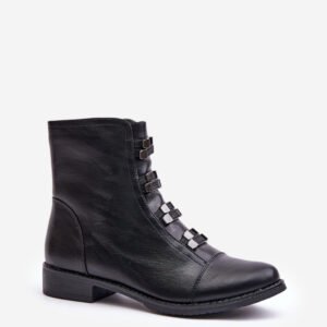 Botki marki Jezzi wykonane z eko skóry, które łączą styl z wygodą. Osadzone na płaskim obcasie, z zaokrąglonymi noskami, zapewniają komfort noszenia na co dzień. Zapinane na zamek, co ułatwia zakładanie i zdejmowanie. Model ten wyróżnia się ozdobnymi gumkami z przodu. Wnętrze ocieplane kocem obuwniczym. Te botki to świetny wybór na jesienne i zimowe stylizacje.
