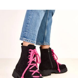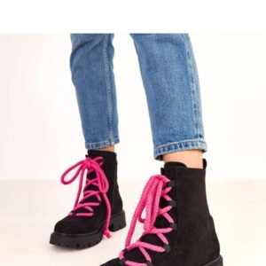 Stylowe botki za kostkę wykonane z wysokiej jakości ekologicznej skóry zamszowej, które łączą modny wygląd z wygodą noszenia. Model posiada sznurowanie z przodu oraz praktyczny zamek z boku, co ułatwia zakładanie i dopasowanie obuwia do stopy. Buty mają okrągły nosek i stabilny obcas o wysokości 4 cm, który zapewnia komfort przez cały dzień. Ocieplane wnętrze i wkładka z miękkiej tkaniny gwarantują ciepło w chłodniejsze dni. Krój o wysokości cholewki 15 cm subtelnie podkreśla kostkę, nadając stylizacji charakteru i elegancji. To doskonały wybór na co dzień, zarówno do spodni, jak i sukienek.
