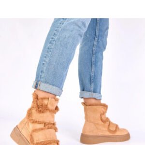 Botki z futerkiem to doskonałe połączenie wygody, stylu i funkcjonalności na chłodniejsze dni. Wykonane z wysokiej jakości ekologicznej skóry zamszowej prezentują się niezwykle elegancko, a jednocześnie są łatwe w pielęgnacji. Model posiada praktyczne zapięcia na rzepy, które ułatwiają szybkie zakładanie i idealne dopasowanie do stopy. Okrągły nosek zapewnia komfort noszenia, a miękkie ocieplenie wewnątrz gwarantuje ciepło nawet podczas niskich temperatur. Stabilna platforma o wysokości 4 cm dodaje sylwetce lekkości, jednocześnie nie obciążając stopy. Wysokość cholewki wynosząca 13 cm oraz konstrukcja sięgająca za kostkę zapewniają dodatkową ochronę i wsparcie. Wkładka wykonana z przyjemnej w dotyku tkaniny podnosi komfort użytkowania, sprawiając, że botki świetnie sprawdzą się zarówno na co dzień, jak i podczas dłuższych spacerów. To idealny wybór dla osób ceniących połączenie nowoczesnego designu, praktyczności i wygody.