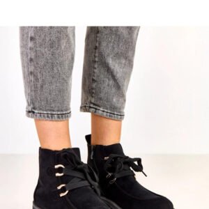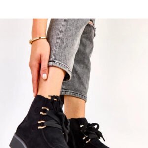 Stylowe i wygodne botki damskie wykonane z miękkiej zamszowej skóry ekologicznej, które łączą elegancję z komfortem codziennego noszenia. Model jest ocieplany, co zapewnia ciepło i komfort w chłodniejsze dni. Botki o wysokości cholewki 12 cm i okrągłym nosku doskonale dopasowują się do stopy, a obcas o wysokości 4 cm zapewnia stabilność i wygodę podczas chodzenia. Ozdobne sznurówki nadają butom modnego charakteru i subtelnego uroku. Zamek boczny ułatwia zakładanie i zdejmowanie, a wkładka z tkaniny zwiększa komfort użytkowania. To idealny wybór dla kobiet, które cenią wygodę, ciepło i efektowne detale w codziennych stylizacjach.