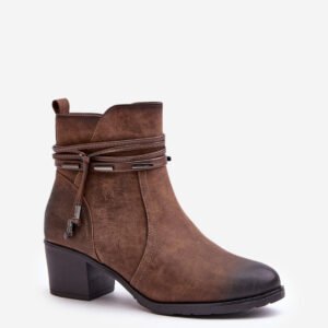 Damskie botki od marki Jezzi. Wykonane z eko skóry. Osadzone na obcasie w formie słupka. Wnętrze ocieplone kocem obuwniczym, zapewnia komfort w chłodniejsze dni. Zaokrąglone noski dodają subtelności, a ozdobny pasek na cholewce podkreśla stylowy wygląd. Modne i wygodne, te botki to must-have w Twojej garderobie!