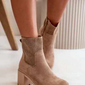 Botki marki Jezzi, wykonane z wysokiej jakości eko zamszu, łączą w sobie styl i funkcjonalność. Stabilny obcas w formie słupka zapewnia wygodę i pewność kroku przez cały dzień. Boczne zapięcie na zamek ułatwia szybkie zakładanie i zdejmowanie butów, co jest praktyczne w codziennym użytkowaniu. Te botki to doskonały wybór dla kobiet, które cenią modny wygląd bez rezygnacji z komfortu.