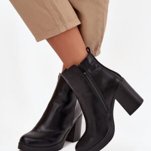 Botki damskie wykonane z eko skóry. Osadzone na stabilnym obcasie typu słupek, zapewniają komfort noszenia i dodają sylwetce subtelnej lekkości. Klasyczny fason sprawia, że doskonale pasują do wielu stylizacji, od codziennych po bardziej eleganckie. Zamek z boku ułatwia zakładanie i zdejmowanie butów. To uniwersalne botki, które sprawdzą się w każdej garderobie.