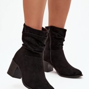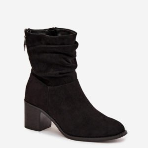 Botki damskie z eko zamszu od marki S.Barski to propozycja, która doskonale sprawdzi się w sezonie jesienno-zimowym. Wykonane z miękkiego, przyjemnego w dotyku materiału, prezentują się bardzo kobieco i modnie. Model został osadzony na stabilnym obcasie typu słupek, który subtelnie wysmukla sylwetkę, a jednocześnie zapewnia wygodę i komfort noszenia nawet przez dłuższy czas. Praktyczne zapięcie na zamek ułatwia zakładanie i zdejmowanie butów, co czyni je funkcjonalnym wyborem na co dzień. Charakterystycznym elementem jest marszczona cholewka, która dodaje całości oryginalności. To model, który doskonale uzupełni zarówno codzienne stylizacje ze spodniami czy legginsami, jak i bardziej kobiece zestawy z sukienką czy spódnicą.