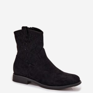 Botki damskie od marki S.Barski to propozycja, która doskonale łączy wygodę z subtelną elegancją. Wykonane z miękkiego w dotyku eko zamszu prezentują się niezwykle stylowo i wpisują w aktualne trendy. Delikatny, ażurowy wzór na cholewce dodaje im lekkości, kobiecego uroku oraz sprawia, że buty wyróżniają się oryginalnym charakterem. Model został osadzony na płaskim obcasie, który zapewnia komfort oraz swobodę podczas codziennego użytkowania. Zapięcie na zamek ułatwia zakładanie i zdejmowanie obuwia, czyniąc je funkcjonalnym i wygodnym rozwiązaniem na co dzień. To botki, które znakomicie sprawdzą się zarówno w casualowych stylizacjach ze spodniami, jak i w bardziej kobiecych zestawach z sukienką czy spódnicą, dodając im modnego charakteru.