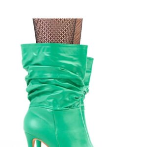 Botki na szpilce z ozdobnym marszczeniem na cholewce to model, który łączy elegancję z modnym akcentem. Wykonane ze skóry ekologicznej, prezentują się stylowo i efektownie, a cholewka o wysokości 21,5 cm z subtelnymi marszczeniami przyciąga wzrok i nadaje butom wyjątkowego charakteru. Smukły, szpiczasty nosek dodatkowo podkreśla ich kobiecy design. Obcas w formie szpilki o wysokości 9,5 cm wysmukla sylwetkę i dodaje pewności siebie, a dzięki wsuwanej konstrukcji botki są praktyczne i szybkie w zakładaniu. Miękka wkładka z tkaniny zapewnia komfort noszenia, a wysokość za kostkę sprawia, że doskonale komponują się zarówno z eleganckimi, jak i codziennymi stylizacjami.