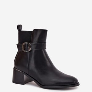 Botki damskie z eko skóry to elegancka propozycja na każdą okazję. Osadzone na obcasie w formie klocka, zapewniają komfort i stabilność przez cały dzień. Noski zaokrąglone. Zapięcie na zamek ułatwia zakładanie, a pasek z klamrą dodają elegancji. Środek ocieplany kocem obuwniczym. Doskonałe na codzienne wyjścia, te botki świetnie komponują się z różnorodnymi stylizacjami.