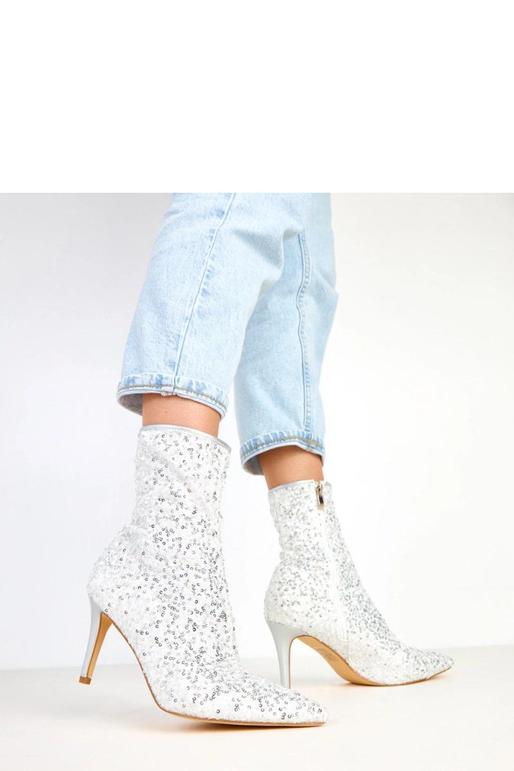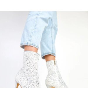 Eleganckie botki za kostkę, które zachwycają oryginalnym designem i blaskiem cekinowego wykończenia. Wykonane z tkaniny, prezentują się wyjątkowo efektownie, podkreślając każdą stylizację. Model ze szpiczastym noskiem i smukłym obcasem typu szpilka o wysokości 8,5 cm wysmukla sylwetkę i dodaje kobiecej elegancji. Cholewka o wysokości 18 cm oraz praktyczne zapięcie na zamek gwarantują wygodę użytkowania. Wnętrze butów wykończone tkaniną, co podnosi komfort noszenia. Idealne na wyjątkowe okazje, gdy chcesz błyszczeć i wyróżniać się stylem.