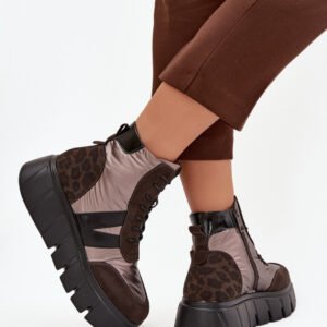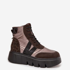 Botki damskie marki Vinceza to modna propozycja na chłodniejsze dni. Wykonane z połączenia eko zamszu i śliskiego materiału prezentują nowoczesny wygląd, który przyciąga uwagę. Osadzone na solidnej platformie zapewniają komfort i stabilność podczas noszenia. Model łączy sznurowanie z zapięciem na zamek, co ułatwia zakładanie i dopasowanie do stopy. Wnętrze ocieplone kocem obuwniczym gwarantuje ciepło i wygodę, dzięki czemu buty świetnie sprawdzą się w sezonie jesienno-zimowym.