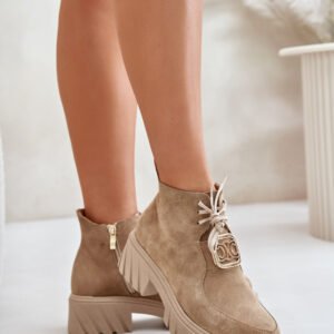 Damskie półbuty wykonane z wysokiej jakości naturalnego zamszu to połączenie elegancji i komfortu. Klasyczne zaokrąglone noski nadają im subtelnego charakteru. Z przodu buta znajduje się złota ozdoba, która stanowi gustowny akcent, podkreślający elegancki wygląd tego modelu. Zapinane na zamek oraz dodatkowo posiadają sznurowanie. Te półbuty idealnie sprawdzą się zarówno na co dzień, jak i na bardziej formalne okazje!