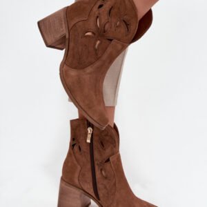 Botki damskie wykonane z naturalnego zamszu to propozycja, która łączy elegancję z modnym akcentem. Wyróżniają się ażurowym wykończeniem, które dodaje im lekkości i oryginalnego charakteru, sprawiając, że doskonale wpisują się w aktualne trendy. Osadzone na stabilnym obcasie typu słupek, zapewniają nie tylko wygodę, ale także delikatnie wysmuklają sylwetkę. Migdałowe noski podkreślają subtelny, elegancki styl tego modelu, a jednocześnie sprawiają, że buty są komfortowe w noszeniu. To botki, które świetnie uzupełnią zarówno sukienki czy spódnice, jak i spodnie, dodając każdemu zestawowi wyjątkowego charakteru.