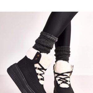 Stylowe botki sportowe sznurowane to idealne połączenie miejskiego luzu i codziennej wygody. Wykonane z wysokiej jakości skóry ekologicznej, prezentują się nowocześnie i są łatwe w pielęgnacji. Model osadzony na solidnej platformie o wysokości 6,5 cm, która dodaje kilku centymetrów wzrostu i zapewnia komfort podczas noszenia. Botki mają okrągły nosek oraz ocieplenie z miękkiego futerka, które gwarantuje ciepło w chłodniejsze dni. Dzięki sznurowaniu z przodu oraz zamkowi z boku, można je łatwo dopasować do stopy i wygodnie zakładać. Cholewka sięga za kostkę (wysokość 12 cm), co zapewnia stabilność i ochronę, a tkaninowa wkładka zwiększa komfort użytkowania. To model, który doskonale sprawdzi się w miejskich stylizacjach, zarówno do jeansów, jak i sportowych sukienek.
